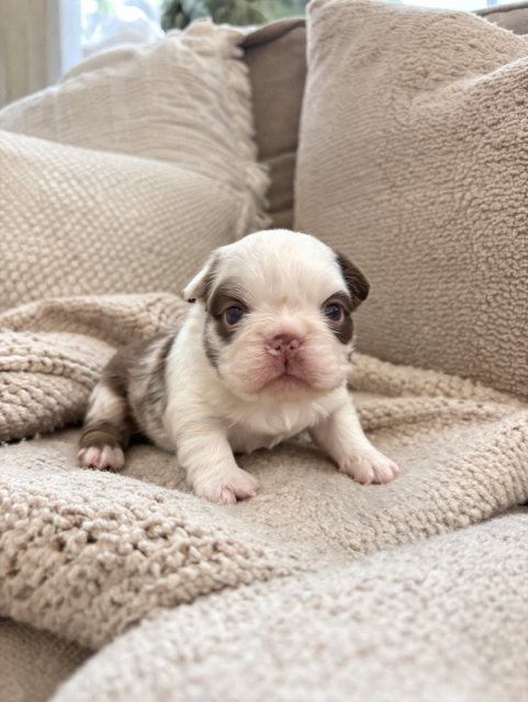 Our french bulldog puppies are from health tested parents with amazing temperaments, all dogs will come DNA color tested, first set of shots and microchipped. They are raised in our home, where they grow to be social & well adjusted puppies. This helps make them feel right at home with their new forever families.
